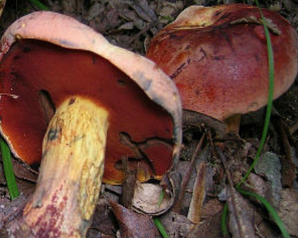 Вот характерный болет, любящий соседство с дубом. Отличается липкой шляпкой ярко красного цвета, иссиня красным гименофором и жёлтой ножкой, покрытой мелкими красными крапинками. Хотя шляпка быстро высыхает, но её былая липкость хорошо заметна по налипшей листве и мусору.