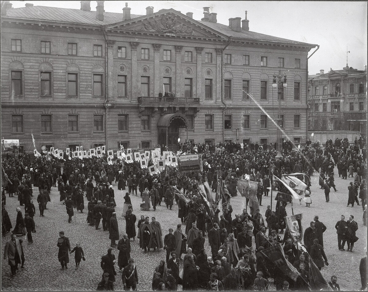 В очередной раз приглашаю вас отправиться на прогулку по Москве прошлого. В этот раз мы перенесёмся в 1905 год: "Кровавое воскресенье", первая русская революция, в Москве от бомбы эсера погибает великий князь Сергей Александрович. Давайте вместе посмотрим, какой была Москва в тот год! Манифестация у дома генерал-губернатора на Тверской площади. Генерал-губернатором до 1905 года был тот самый великий князь Сергей Александрович, который погиб в феврале от бомбы эсера. А после него московские градоначальники менялись один за одним, по несколько раз в год. Укладка трамвайных путей на Яузской улице. Сейчас это место изменилось до неузнаваемости: осталась лишь Троицкая церковь с колокольней, слева находится Устьинский сквер, а дома по правую руку теперь совершенно другие. Ресторан Крынкина с прекрасным видом на Воробьёвых горах. Одно из излюбленных мест прогулок москвичей того времени - это набережная Храма Христа Спасителя (ныне - Пречистенская набережная). Вид
