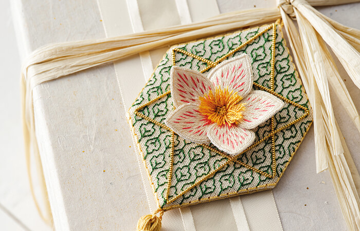 В Рождественской розе видно, как прекрасно сочетаются в одном дизайне счетная вышивка и золотное шитье.