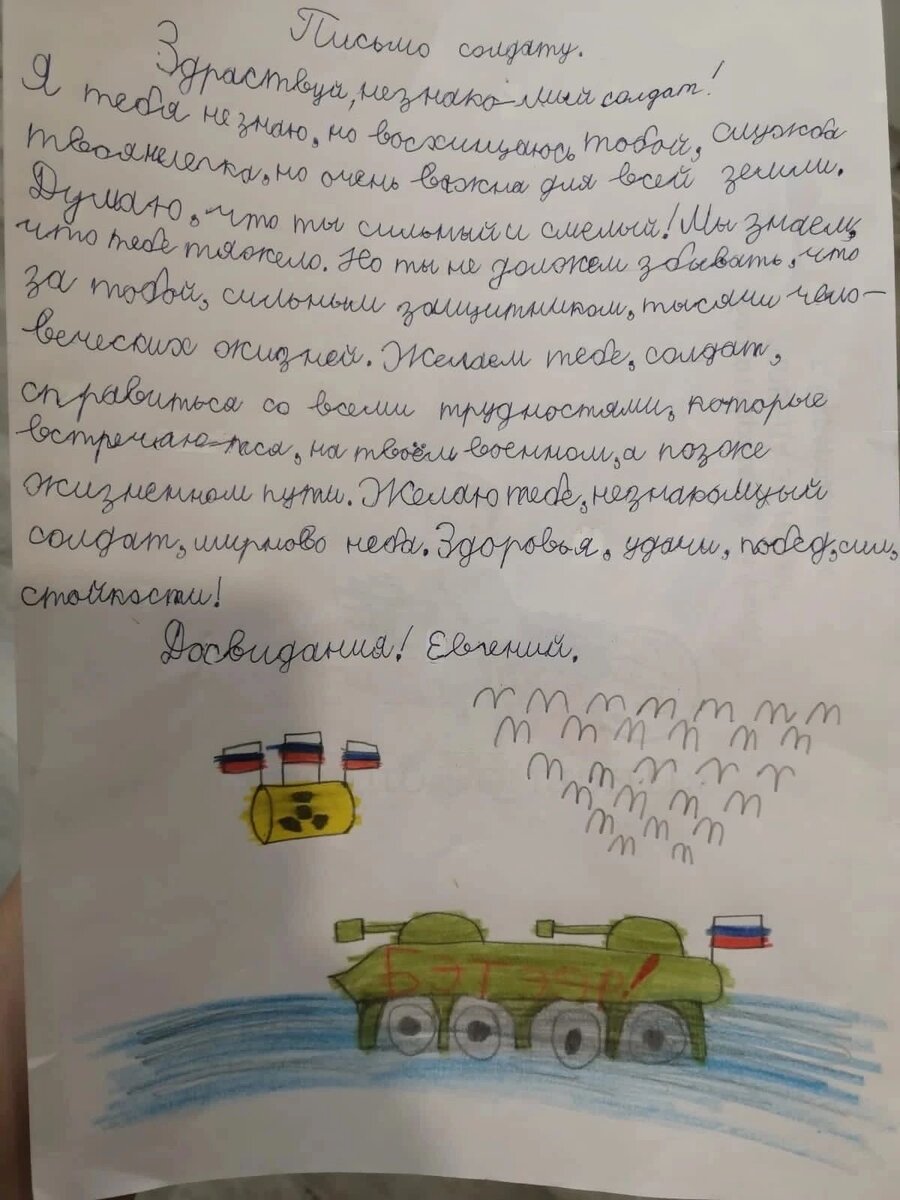 А ваши дети писали письмо солдату? 💣Специальная военная операция — это время испытаний и трудностей, когда бойцы покидают свои дома и близких. В такие моменты становится важным понимать, что мы помним и ценим их службу и жертвы. Поэтому письма и рисунки, присланные военнослужащими со всей страны, играют огромную роль в сохранении их духа и морального состояния. ✉️📩 Давайте не будем забывать о важности писем и рисунков для Герое на СВО. Даже самые небольшие знаки внимания и слова поддержки могут стать огромными источниками вдохновения и мотивации для тех, кто отстаивает нашу свободу и безопасность.