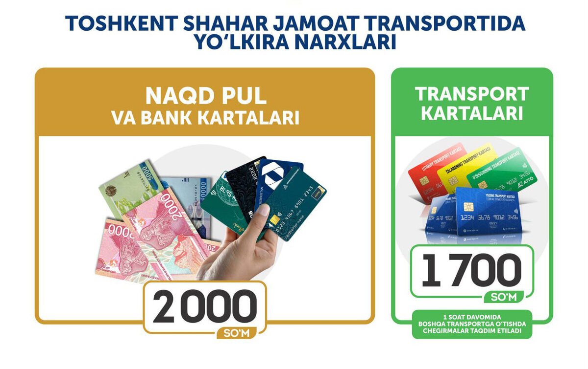 Узбекистан, Ташкент – АН Podrobno.uz. Компания "Тошшахартрансхизмат" сообщила о повышении с 1 ноября тарифов на проезд в общественном транспорте Ташкента. Это решение ранее откладывалось несколько раз, сообщает корреспондент Podrobno.uz. Теперь стоимость проезда составит 2 тысячи сумов при оплате наличными и банковскими картами. Однако если вы будете оплачивать проезд транспортной картой ATTO, то стоимость проезда снизится до 1700 сумов. Кроме того, вводятся так называемые пересадочные тарифы. Если вы после выхода из одного автобуса в течение часа пересаживаетесь в другой, то стоимость второй поездки составит 700 сумов. При этом третья и четвертая пересадки в течение часа будут бесплатными. Здесь есть только один нюанс – все это работает при оплате картами АТТО. При этом в компании не уточнили, будут ли работать скидки при пересадках на метро. Самые быстрые новости в Телеграм. Присоединяйтесь.