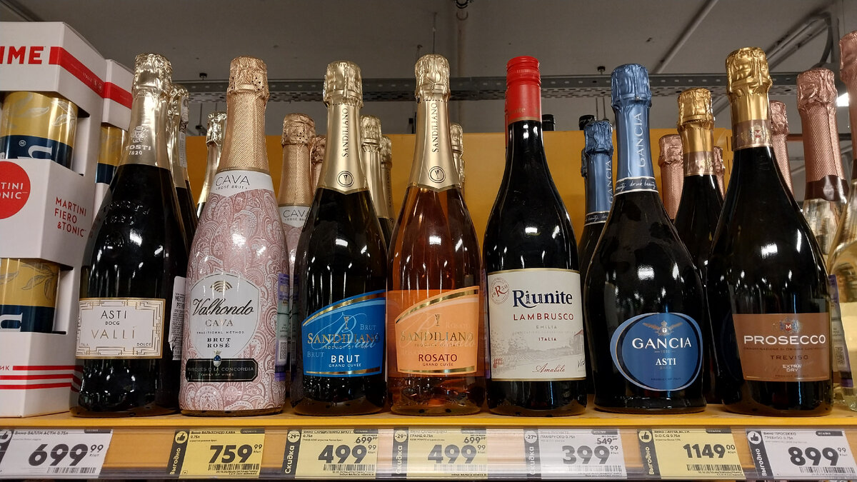 В сегодняшнем обзоре пройдёмся всего лишь по трём розничным сетям, причём весьма обзорно, извините за тавтологию. :D Уже в который раз сталкиваюсь с тем, что в "Пятёрочках" ничего нового, на полках абсолютно тот же ассортимент, что и несколько месяцев назад, да и заметных скидок тоже нет! Или это только у нас в Нижнем Новгороде? А в ваших городах и весях, может, "Пятёрочки" щедрее на акции? Напишите, пожалуйста, в комментариях, у кого есть что в защиту "Пятёрочки"? Единственное, что порадовало глаз, это акция на итальянские игристые Sandiliano, временно подешевевшее с 699 руб на более доступные 499 руб: Но мне кажется, что когда это вино здесь появилось примерно с полгода назад, они просто выставили слишком дорогую цену на него! Теперь, манипулируя завышенной ценой в меньшую сторону, пытаются понять, по какой цене народ станет активнее покупать. Аналогичная ситуация на этой неделе в "Перекрёстках"! Хочется поставить на вид владельцу обеих сетей X5 Retail Group, что в наше нелёгкое вр