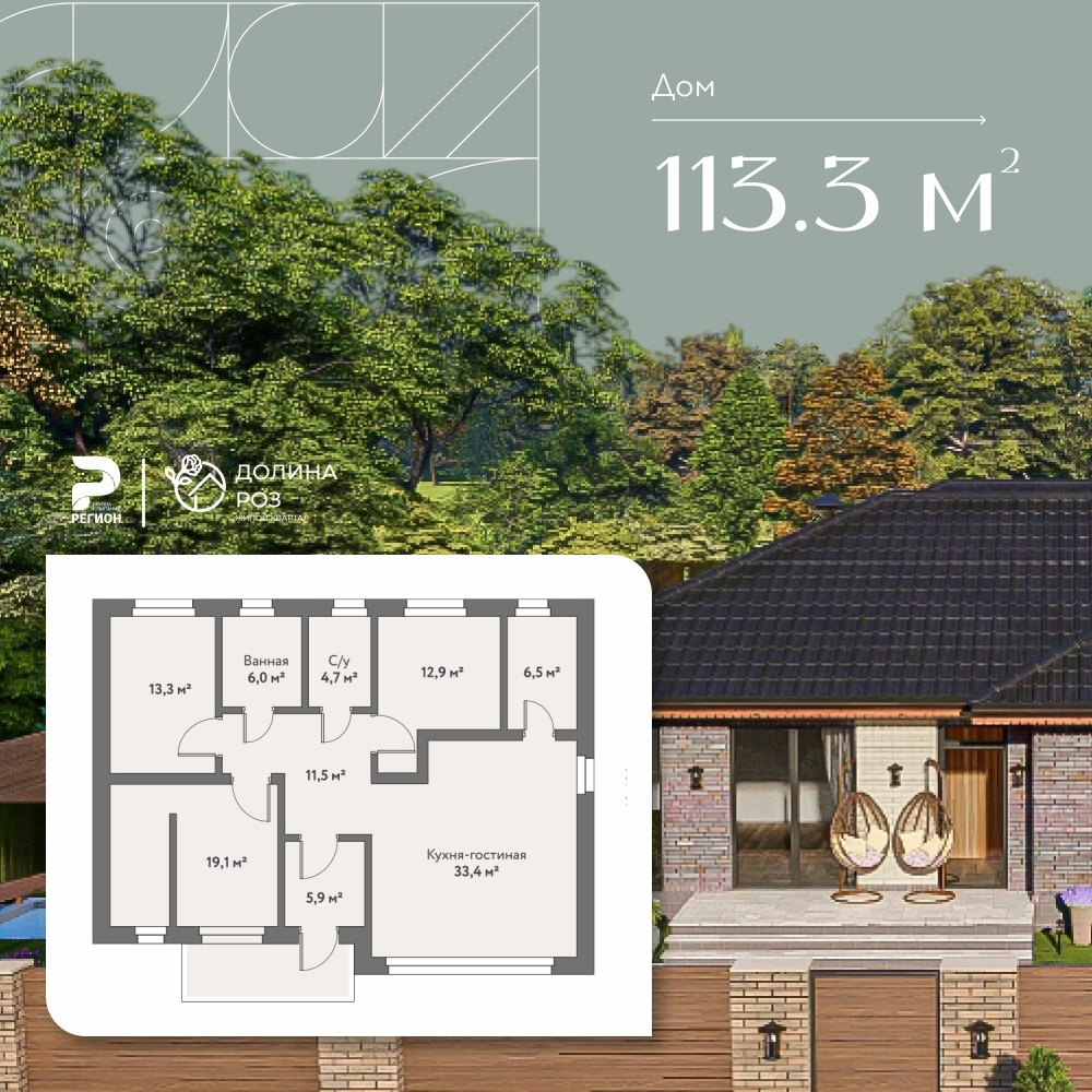 - 3 вместительные спальни, в одной из которых большая гардеробная