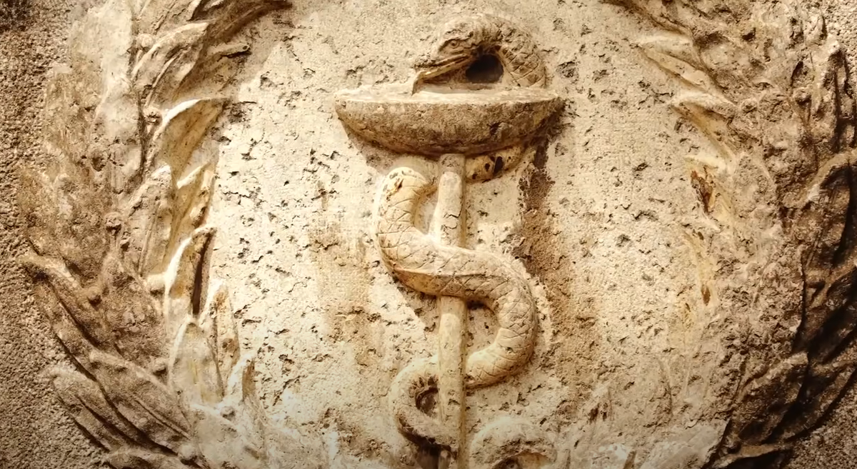 Легенда повествует о том, что Асклепий был сыном Аполлона и богом врачевания, а его мудрость и умение исцелять были непревзойденными, даже говорят, что он открыл секрет самой жизни и смерти. В древнегреческих исцеляющих храмах Асклепия была общепризнана сила изначальной спирали, символом которой является жезл Асклепия. В свою очередь Гиппократа называли отцом медицины и приношение ему клятвы считается моральным долгом каждого человека медицинской профессии. Впервые эту клятву стали давать, при обучении в храме Асклепия. По сей день этот символ нашей эволюционной энергии остаётся в качестве логотипа многих всемирных медицинских организаций (извивающаяся змея). В египетской иконографии змеи и птицы олицетворяли собой двойственность или как её ещё называют полярность человеческой природы. Спускавшаяся вниз змея символизировала собой спираль эволюционной энергии мира, а взлетавшая к Солнцу птица, олицетворяла пробудившееся и сконцентрированное сознание и символизировало собой пустоту "акаши".