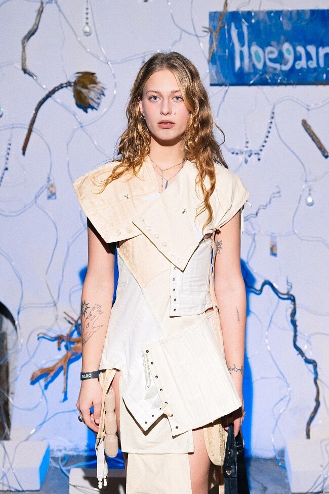 — «Здесь стоит обратить внимание на технику: сначала несколько слоев одного сюжета и образов были созданы маслом, хромом и дрелью, после покрыты эмалью и нарисованы заново, но чуть иначе, уже с добавлением кусочков линогравюр. И снова покрыты эмалью, что позволило добавить воздуха в холст и создать уже окончательное высказывание. Если внимательно рассматривать холст, можно без труда увидеть проступающие через белый фон, который напоминает туман, фактуры, неровности, линии и шрамы. Эта работа как бы приглашает зрителя внутрь себя, транслируя сначала отчетливый и ясный образ, с пусть и абстрактными, но поддающимися под человеческие ассоциации объектами (бабочка, цветы, корни). В стремлении увидеть взаимосвязь форм и текстур становится ясно, что эта взаимосвязь сложнее, чем кажется», — рассказала Лиза Фикус. Интересно то, что в своих работах она не только поднимает тему подсознания, но и элементы клубной культуры. Но как ей удается соединить на первый взгляд совершенно противоположные идеи? Возьмем в пример инсталляцию «Искаженные образы», где был использован искусственный строительный материал — газоблок.