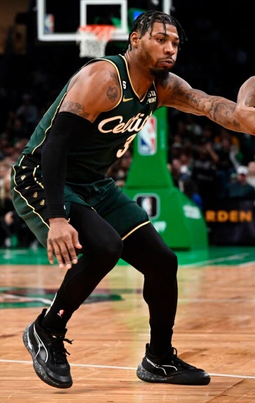 Эти кроссовки - одни из самых недорогих в Funky Dunky. Модель не самая свежая, но бренд Puma сперва выпустил низкую (low) версию, а затем средне-высокую, которую компания позиционирует как mid. Playmaker Pro подходят для игры на уровнях от любительского до профессионального и, может, поэтому в прошлом сезоне в них 30 матчей провёл лучший оборонительный игрок NBA 2022 года Маркус Смарт из Boston Celtics. Сейчас он уже защищает цвета Memphis Grizzlies.