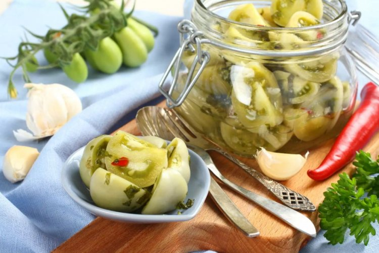 Закрутки любят многие российские (и не только) семьи. Женщины каждую осень делятся друг с другом десятками проверенных рецептов, а затем делают разные заготовки. Всё для того, чтобы зимой можно было с наслаждением вспомнить о дарах прошедшего лета. Ингредиенты В данном случае количество указано для 3-4 двухлитровых банок, вы можете сделать по своему усмотрению увеличив или уменьшив пропорции. Что касается времени, то вам понадобится примерно 1 час 20 минут для подготовки ингредиентов и всего 20 минут на приготовление. 1 этап. Подготовка ингредиентов Помидоры нужно нарезать кубиками и отжать у них лишнюю влагу. Перцы и лук очистите и измельчите. В ступке разотрите чеснок, соль и кинзу до состояния кашицы. В этой же ступке измельчите грецкие орехи. 2 этап. Приготовление Подготовьте большую сковородку, налейте подсолнечное масло и засыпьте подготовленные ранее ингредиенты. Второй вариант салата из зелёных помидоров Ингредиенты 1 этап. Подготовка Нарежьте помидоры и перец на кусочки, чес
