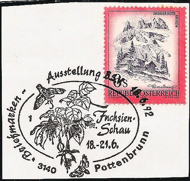Спецгашение Австрии 1992 года с изображением бражников, опыляющих цветы