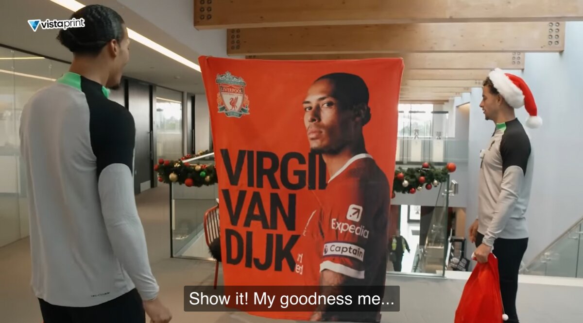 Футболисты «Ливерпуля» решили начать отмечать Рождество осенью. Ван Дейк и Джонс примерили на себя образ помощников Санты и отправились раздавать подарки одноклубникам. Санта, конечно, товарищ щедрый, но подопечные Клоппа могли выбрать лишь один презент – либо от Вирджила, либо от Кертиса. Подарки, кстати, были не простыми, а персонализированными! Игроки получили сувениры с изображениями Ван Дейка или Джонса, в зависимости от их выбора. Матипу, например, достался плед с гигантским портретом Вирджила. Наконец очередь дошла до Собослаи. Венгр получил чашку с изображением Кертиса. Ему также достался роскошный халат в клубных цветах. Сперва Доминик не хотел надевать обновку, но потом новичок «Ливерпуля» будто врос в халат. Ван Дейк и Джонс продолжали выполнять миссию Санты и раздавали подарки одноклубникам, блуждая по базе «красных». То и дело им попадался Доминик – в халате и с кружкой. Кажется, со своей задачей Кертис и Вирджил справились. Один счастливый венгр в «Ливерпуле» теперь точно