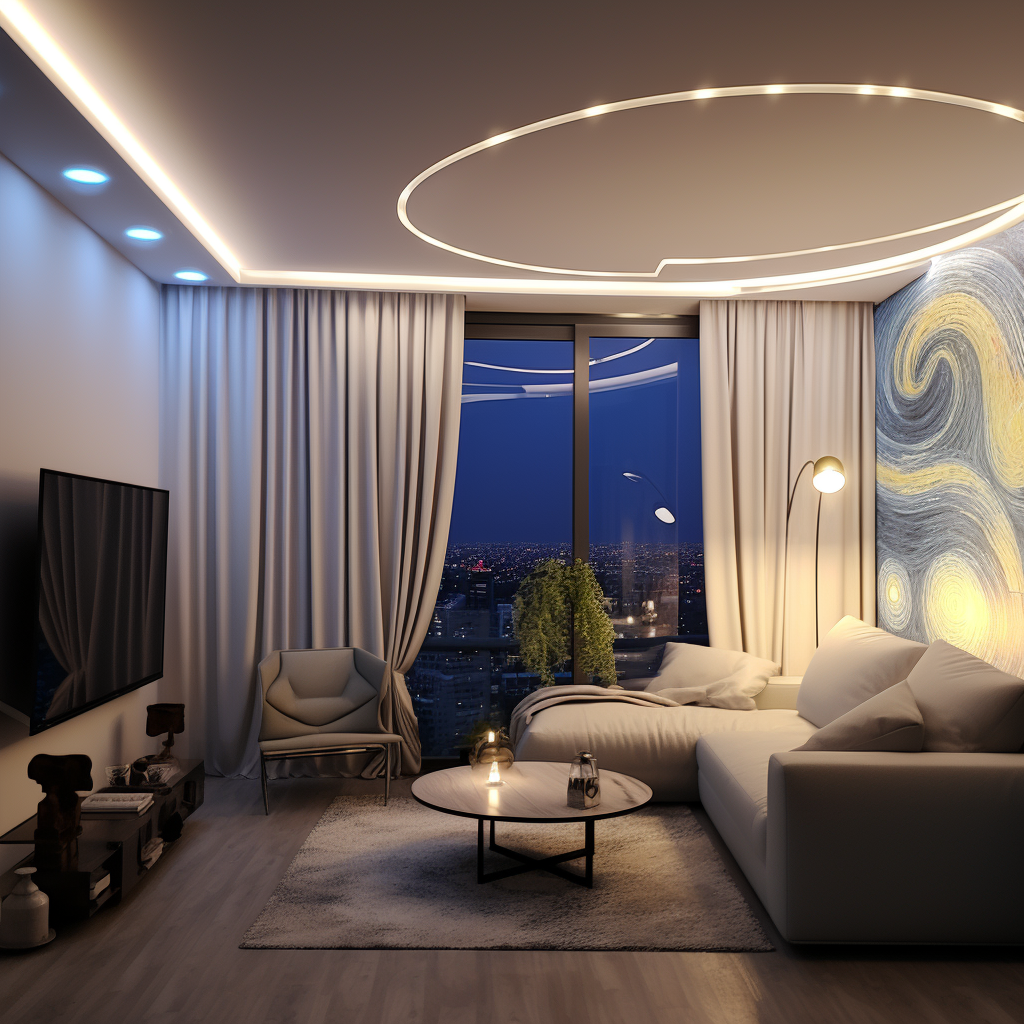 - Умное освещение: С развитием технологий "умного дома", многие натяжные потолки могут быть интегрированы в системы умного освещения, такие как Philips Hue или другие аналогичные системы. С такими системами вы можете не только менять цвет света, но и управлять им через мобильное приложение, настраивать графики освещения, создавать временные сценарии и многое другое.