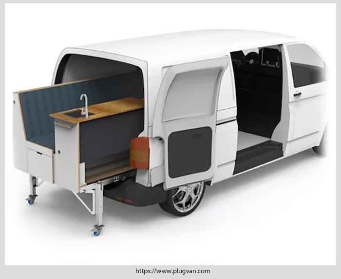 Хотели бы вы сделать дом на колесах своими руками из небольшого фургона без какой-либо модификации своего автомобиля? Думаю, что эта идея понравится всем любителям активного отдыха и дальних путешествий. Компания PlugVan предлагает гибкое решение для тех, кто хочет путешествовать с комфортом, не отказываясь от возможностей своего фургона. Она создала модуль, который позволяет превратить ваш автомобиль в кемпер всего за несколько минут, без необходимости внесения каких-либо изменений в базовый автомобиль, а затем вернуть его в исходный вид. Почему бы не воспользоваться подобной идеей домашнему мастеру и сделать такой модуль для своего автомобиля? Для реализации подобного проекта вам не потребуется сложных инженерных решений. Модуль идеально подходит для многих моделей фургонов, включая Mercedes Vito, VW T4, T5 и T6.1, а также к другим автомобилям с подходящими размерами и грузоподъемностью. Модуль включает выдвижные боковые панели, которые максимально адаптированы к ширине автомобиля. У