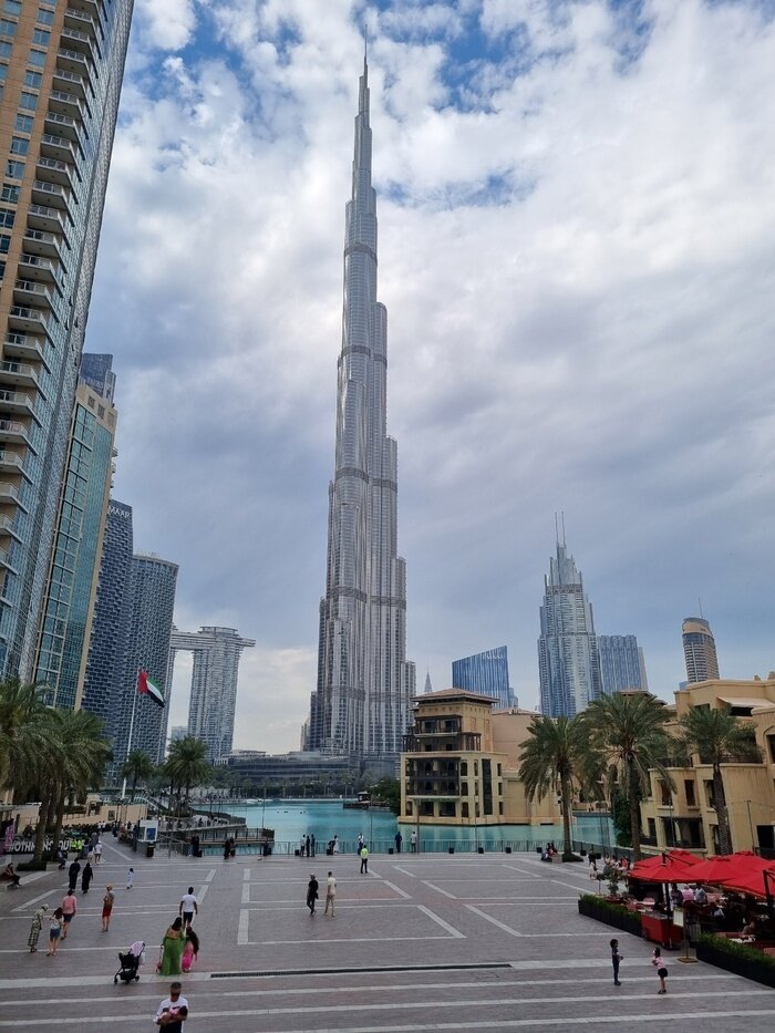 Закончилась же экскурсии у Бурдж-Халифы , где мы в окружении небоскребов насладились шоу самых больших в мире танцующих фонтанов . От этого зрелища аж мурашки бегут по телу