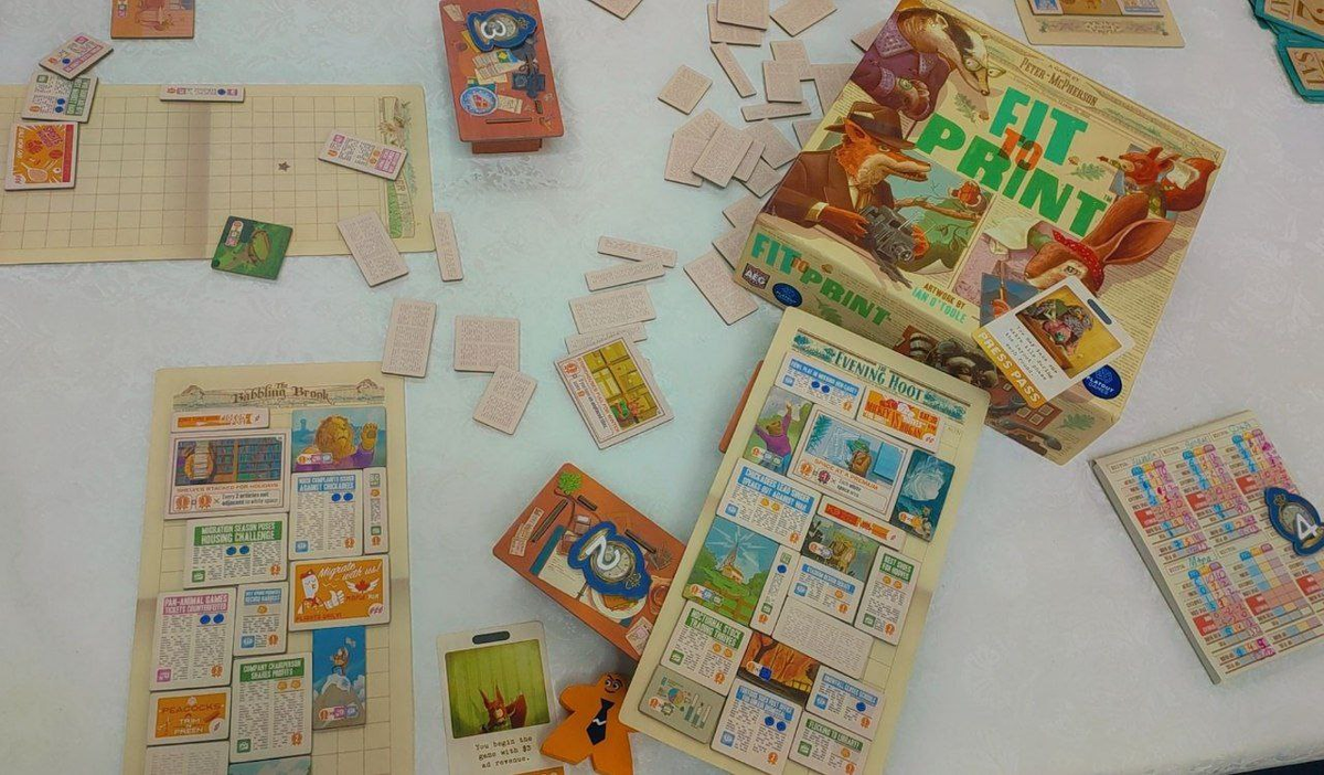 В игре «Fit to Print» от 1 до 6 игроков берут на себя роль главного редактора газеты маленького города, переживающей некоторые трудности. Ваша работа как руководителя — собирать новостные статьи, фотографии и рекламные вставки, преобразуя их в сбалансированную и интересную первую полосу газеты для ваших читателей. Каждый из этих элементов представляет собой тайл, а ваш личный планшет игрока — это главная страница. В течение трех раундов/дней (пятница, суббота и воскресенье) вы попытаетесь набрать как можно больше очков, расставляя эти тайлы в соответствии с набором правил.