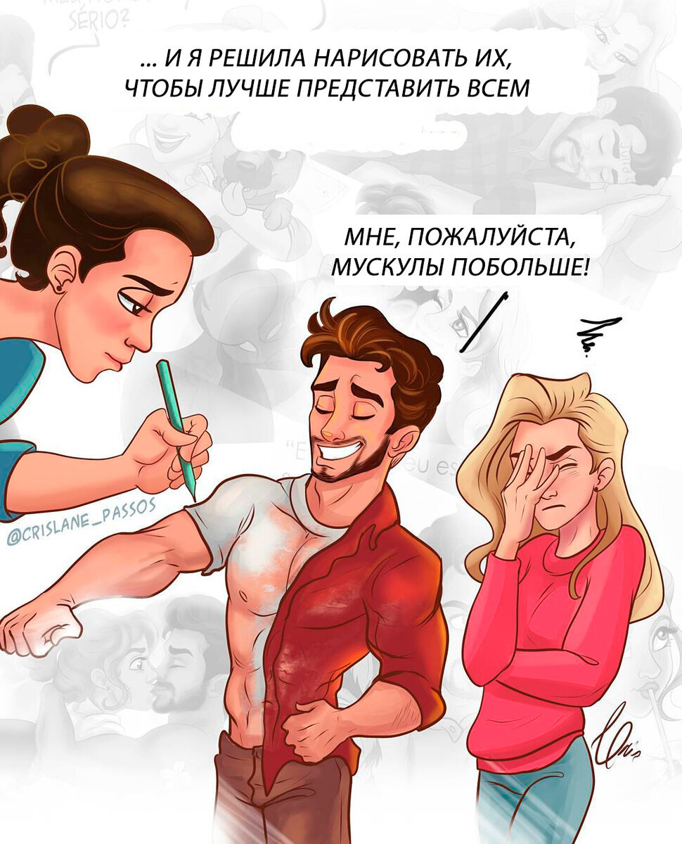 Комиксы, повествующие о мужчинах и женщинах, сегодня очень востребованы как иллюстраторами, так и аудиторией. Первым можно не задумываться над сюжетами, поскольку любовная или семейная пара генерирует их практически ежедневно: знай себе наблюдай за знакомыми или своей жизнью и переноси на бумагу, а вторым нравится искать совпадения между собой и нарисованными героями. Бразильская художница Крислейн Пассос рисует Макса и Джулию – молодых людей, которые, прежде чем пожениться, прошли безмятежный конфетно-букетный период и завели пса. Она придумала их несколько лет назад, когда писала роман. Но когда книга была закончена, расставаться с героями ей не захотелось. И Крислейн сделала о них комикс, позволив персонажам обрести счастье в паре и сохранить романтику в отношениях. Эти комиксы словно мир единорогов и розовых пони: все друг друга любят, серьёзных конфликтов не наблюдается, а происходящие мелкие размолвки быстро решаются объятиями и поцелуями. Так должно быть в идеальных отношениях,