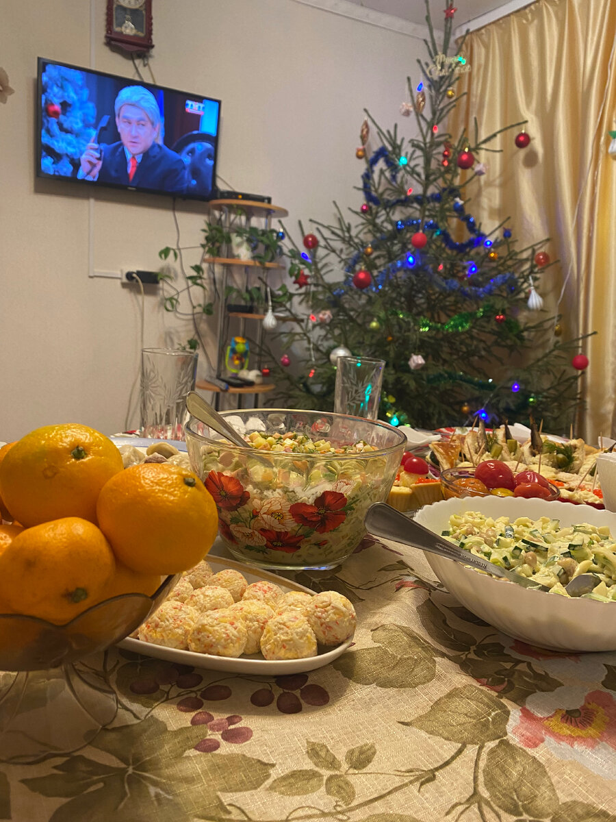 Всем привет! Приближается время новогодних праздников 😓 для меня это только море заморочек. Я уже очень давно не чувствую праздничного настроения, все проходит в суете. Тебе надо успеть купить подарки, продумать меню, закупиться едой, приготовить все и себя еще в порядок привести. 😵💫 Прошлый Новый год я встречала в положении. Мы решили с мужем уехать к свекрови в деревню. У меня не было желания встречать праздник в шумной компании, хотелось просто посидеть немного за столом и уйти спать. Тем более, что в это время у меня начались отеки на ногах. Сидеть пол дня на кухне и готовить салаты вообще было не вариант. Мы праздновали небольшой компанией, свекровь, брат мужа с женой и ребенком и один наш друг, который приезжает погостить с севера в эту же деревню к своей маме. В деревне всегда живая елка, как из моих детских воспоминаний. Везде белый снег и легкий морозец. Лет с 14, Новый год я встречала в компании друзей. Сначала с родителями, а потом встречались уже все вместе и шли к к