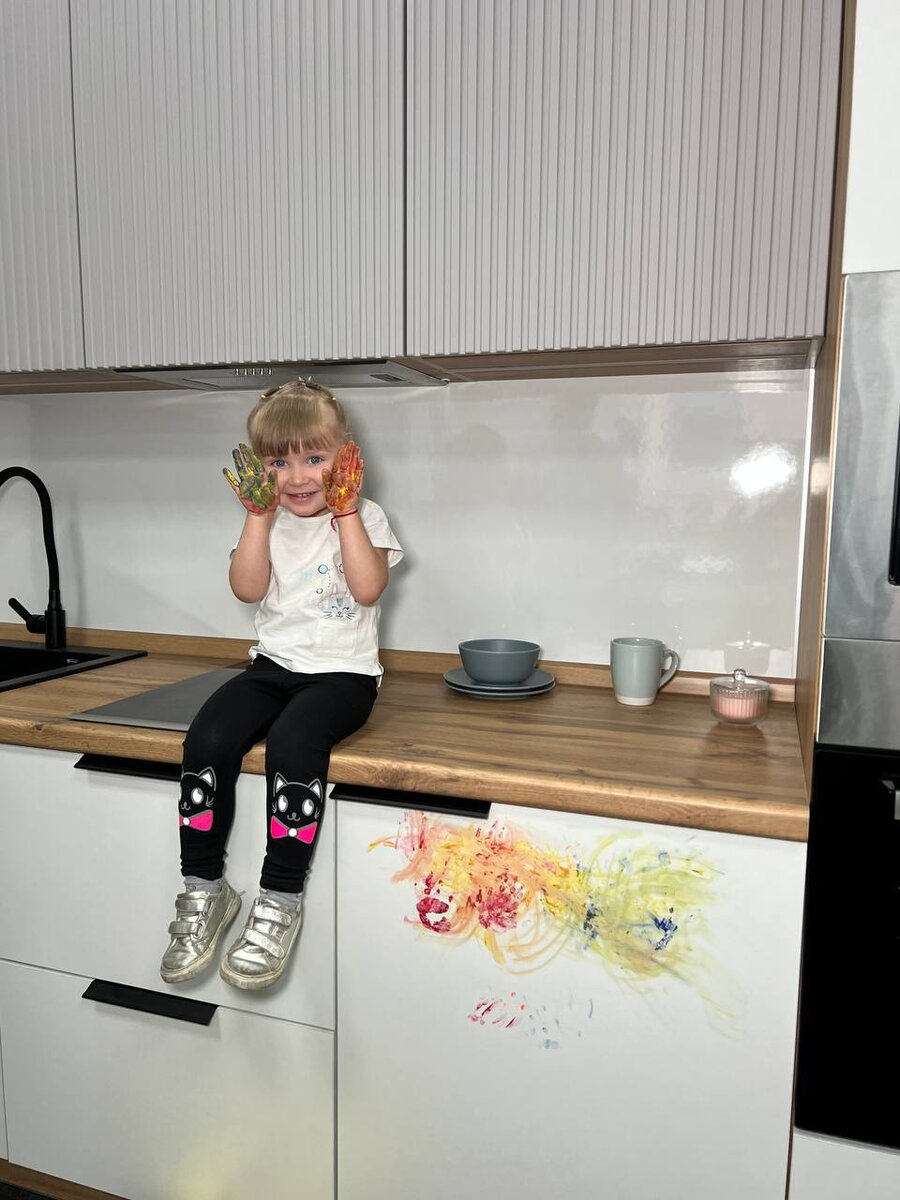 Статья актуально для тех, кто планирует детей или в вашей семье уже есть дети! Поверьте, рекомендация из статьи проверена лично дизайнерами FORREST. Итак, вы планируете покупку новой кухни, но знаете, что дети умеют виртуозно создавать хаус в любом месте, и ваша будущая мечта не станет исключением. Пятна на фасадах, следы от карандашей и красок. Пролитый сок, кусочки свеклы, морковки или следы от брокколи, которые ребенок швырнул и все отразилось на дверях шкафов и выдвижных ящиках. Мамы, знакомо? Так что же делать? У дизайнеров FORREST есть решение! Выбирайте для своей новой кухни пластик Fenix. Пластик Fenix или пластик Arpa - высокотехнологичный наноматериал с удивительной матовой поверхностью, устойчивый к механическим повреждениям и воздействию иных агрессивных физических и химических факторов. А уж с детскими шкодничествами это покрытие точно справится! Не все так ИДЕАЛЬНО, стоит отметить, что покрытие также требует к себе бережного отношения. Разовое воздействие абразивным средс