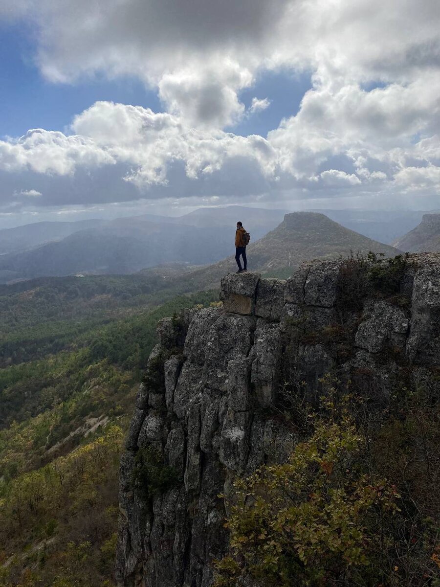 Просматривая фотографии, которые мы сделали в прошлом году с этой смотровой площадки на Тепе-Кермен, понимаем, насколько была краше и ярче осень тогда. Всем привет. Мы Иван и Дарья - семья из Крыма. Любовь всей нашей жизни - это путешествия. В блоге "Покажи мир" делимся своими впечатлениями от мест, которые посетили. Выезжая из Симферополя, мы были полны ожиданий увидеть все краски осени. Красный, желтый, коричневый и так далее. Крымская осень может писать целые "картины" цветом листьев по лесным пейзажам. Но, этот год, видимо, природа сделала перерыв в своих цветных художествах. По факту, сейчас из-за теплой и не особо дождливой погоды половина деревьев еще зеленые. И это в начале ноября. А вторая половина растений стоит с засохшими или опавшими листьями.