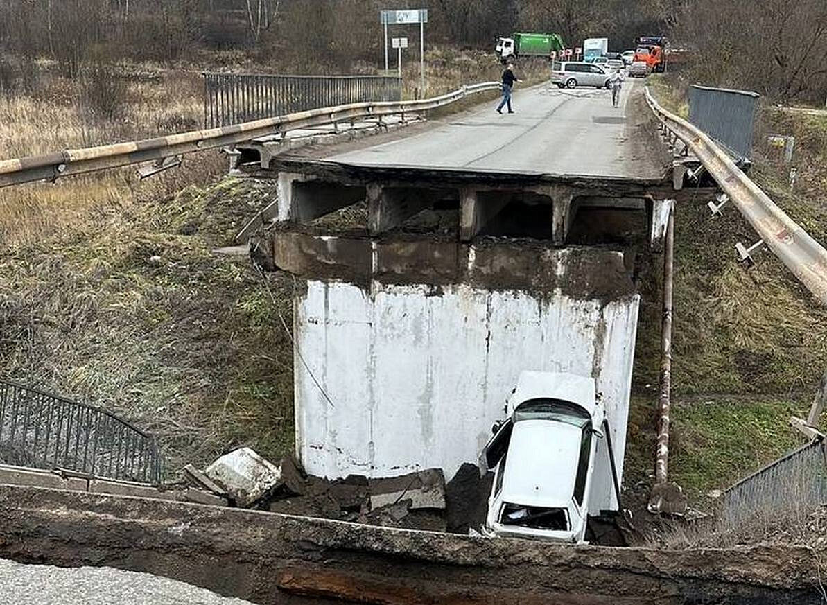 В Подмосковье обрушился мост вместе с проезжающей машиной
