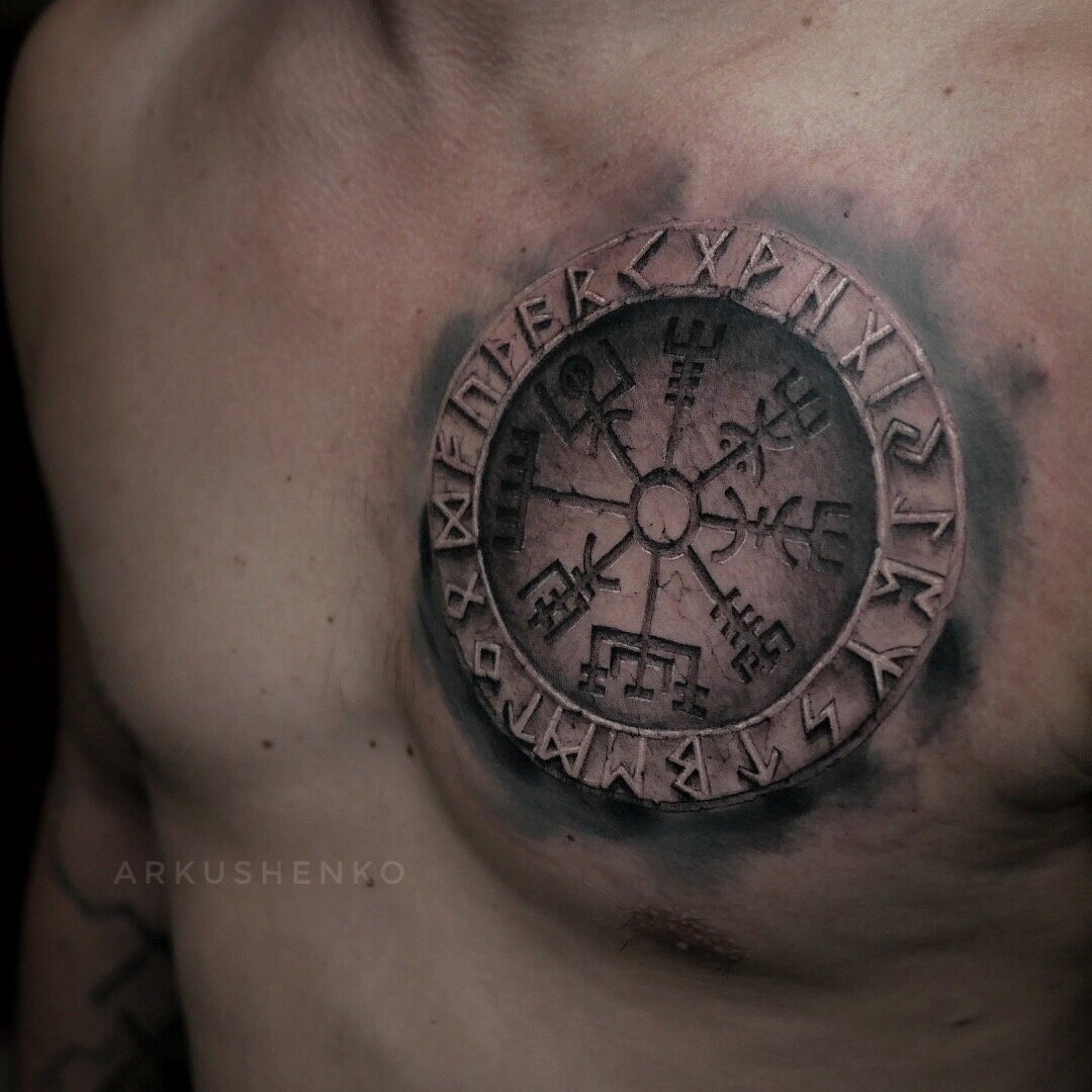 Компас на моей груди - это не просто рисунок, это мой истинный путеводитель в жизни и духовном мире. Моя история началась с мечты о поиске смысла и своего пути, и эта татуировка помогла мне найти ответы. Я хочу поделиться с вами этой историей, которая стала частью моей жизни. Татуировка Вегвизир - это скандинавский мифологический символ, известный как "знак настоящего пути". Согласно легенде, Вегвизир помогал викингам не заблудиться в мире, как в реальности, так и в духовных путешествиях. Моя жизнь не всегда была простой и однозначной. Я всегда искал смысл и путь, который ведет меня к истинному счастью. И в какой-то момент мой путь привел меня к идеи татуировки, которая стала бы для меня символом направления и цели. Обратившись к мастеру татуировки Аркушенко Вадиму, я рассказал о своей идее. Мы вместе разработали дизайн. Татуировка воплотила в себе дух мифологии и мое стремление найти истинный путь. С тех пор Вегвизир стал моим гидом в мире и душе. Он напоминает мне, что важно не з