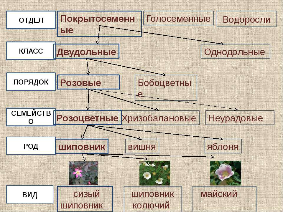 Принципы классификации растений Основы ботанической классификации растений заложил Карл Линней, давший описание многих видов растительного мира. В настоящее время в систематике растений применяют следующие основные категории: отдел, класс, порядок, семейство, род, вид, подвид, разновидность, форма и сорт. Отдел — одна из крупных категорий, используемых в систематике растений, объединяет родственные классы (например, Покрытосеменные, или Цветковые). Класс — категория рангом ниже отдела, объединяет близкие порядки (например, Двудольные, Однодольные). Порядок — одна из основных категорий систематики растений, объединяющая родственные семейства (например, Злакоцветные. Бобовоцветные). Семейство — объединяет растения, похожие друг на друга по способу размножения, происхождению и строению органов. Например, семейство Злаковых включает в себя пшеницу, рожь, овес, ячмень, просо, сорго и др. Близкие виды объединяют в ролы. Например, пшеница — это род. В свою очередь пшеница имеет несколько ви