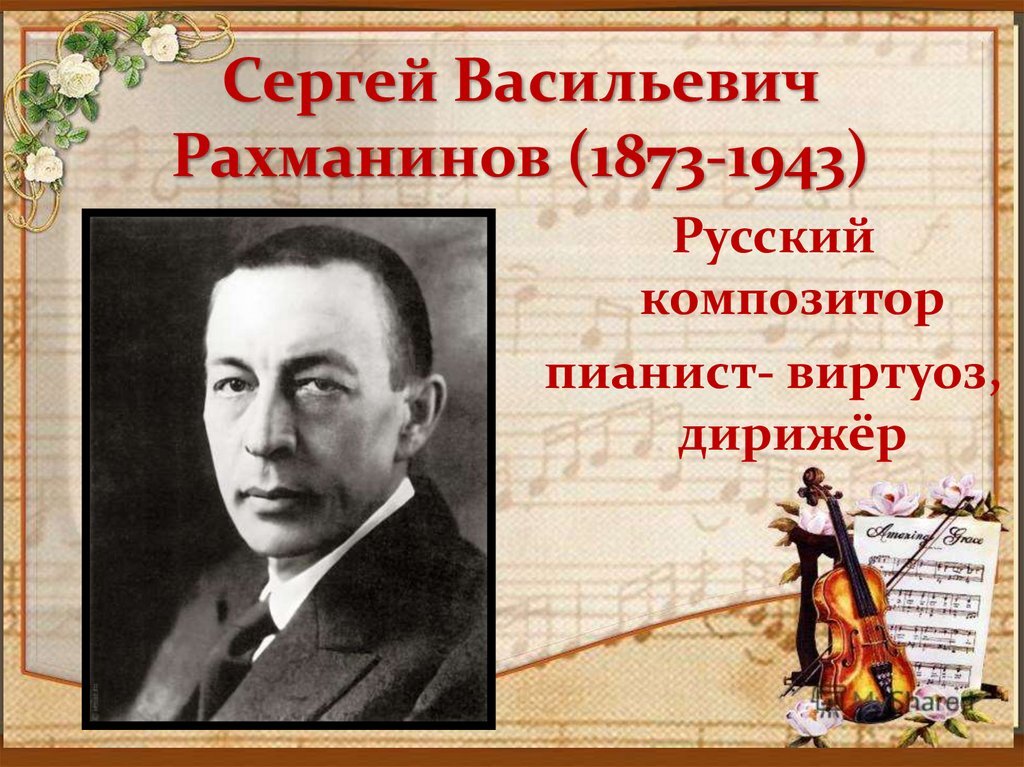 «Путешествие в мир классической музыки» (Литературно-музыкальная гостиная к 150-летию С .В. Рахманинова) 20 октября в Чеконской сельской библиотеки-филиале №25 прошло мероприятие, посвящённое юбилею С. В. Рахманинова. Сергей Васильевич Рахманинов – гениальный композитор, пианист, дирижер. Трудно переоценить талант этого человека. Его музыкальному дарованию отдавали предпочтение великие художники, поэты. Тем самым прославляя его творчество. Великий композитор вывел русскую фортепианную музыку на высокий мировой уровень, на записях его произведений до сих пор учатся музыканты, его музыку исполняют все пианисты мира. Для учащихся 4 класса была проведена литературно-музыкальная гостиная «Путешествие в мир классической музыки». Дети познакомились с жизнью и творчеством композитора, узнали интересные факты его биографии. В частности о том, что Сергей Васильевич не обладал музыкальными, утонченными пальцами рук. У него была очень крупная ладонь, пальцы. Однако это не помешала ему быть талант