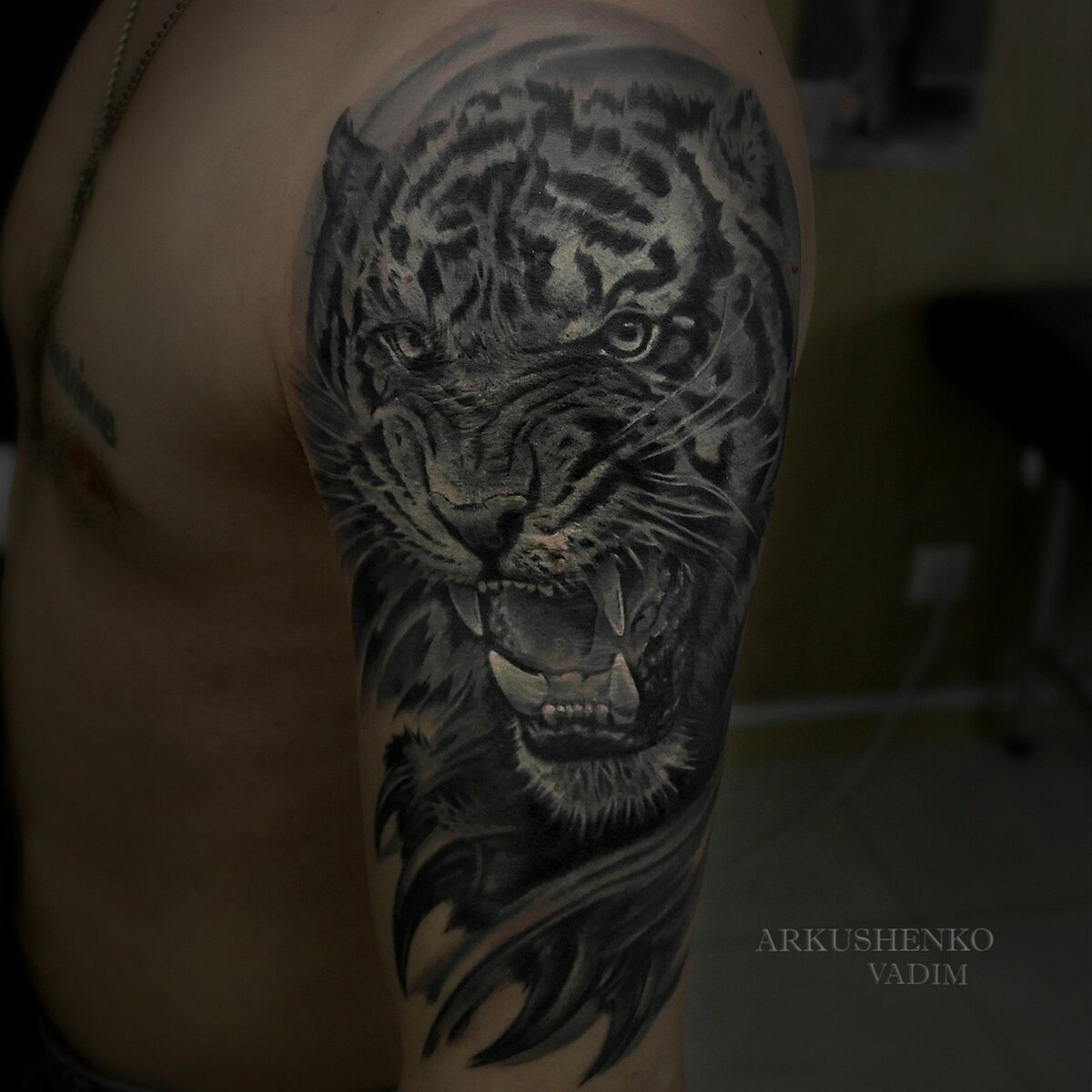 Моя история началась с некрасивой и неуклюжей татуировки, которую я решил сделать в молодости, под влиянием необдуманных решений и нежданно-негаданно попав под руку неопытного татуировщика. С годами, она стала для меня каким-то символом несовершенства и безответственности. Сегодня я расскажу вам о том, как моя некрасивая татуировка стала источником вдохновения и смысла. Вместо того,чтобы просто попытаться перекрыть ее другим рисунком, я решил вложить в нее смысл и создать из несовершенства что-то уникальное. Сначала я обратился к опытному мастеру, и его совет стал для меня ключевым. Вместо того,чтобы просто исправить татуировку, он посоветовал найти в ней смысл. Это была сложная задача, но я был готов попробовать. Я начал думать над историей, которая была бы не просто захватывающей, но и мифологической. Вдохновленный историями о силе и свободе, я начал придумывать сюжет, который мог бы воплотиться на моей коже. И вот результат - моя татуировка теперь изображает могучего тигра с оск