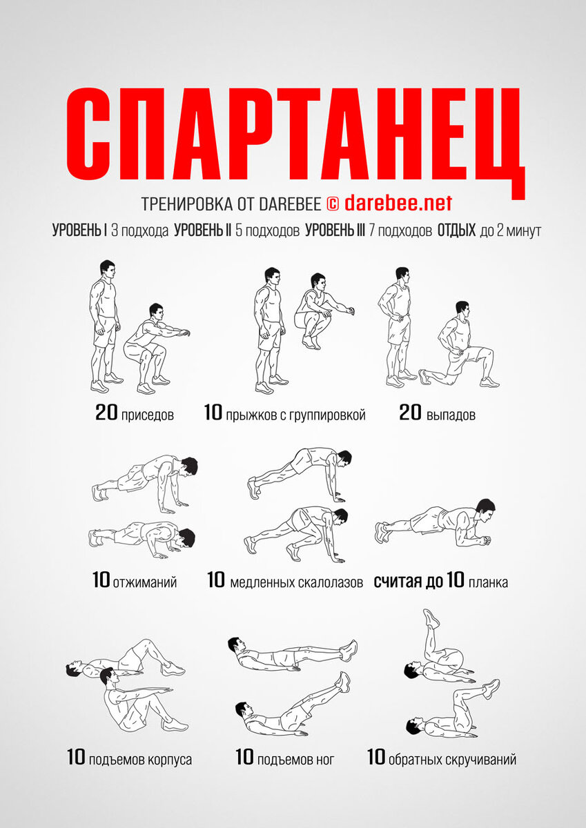 Новый релиз — Спартанец Тренировка Спартанец - почувствуй себя воином. https://darebee.net/spartan-workout.html ЦЕЛЬ: все тело ТИП: сила СЛОЖНОСТЬ: 3 — подходит для начинающих