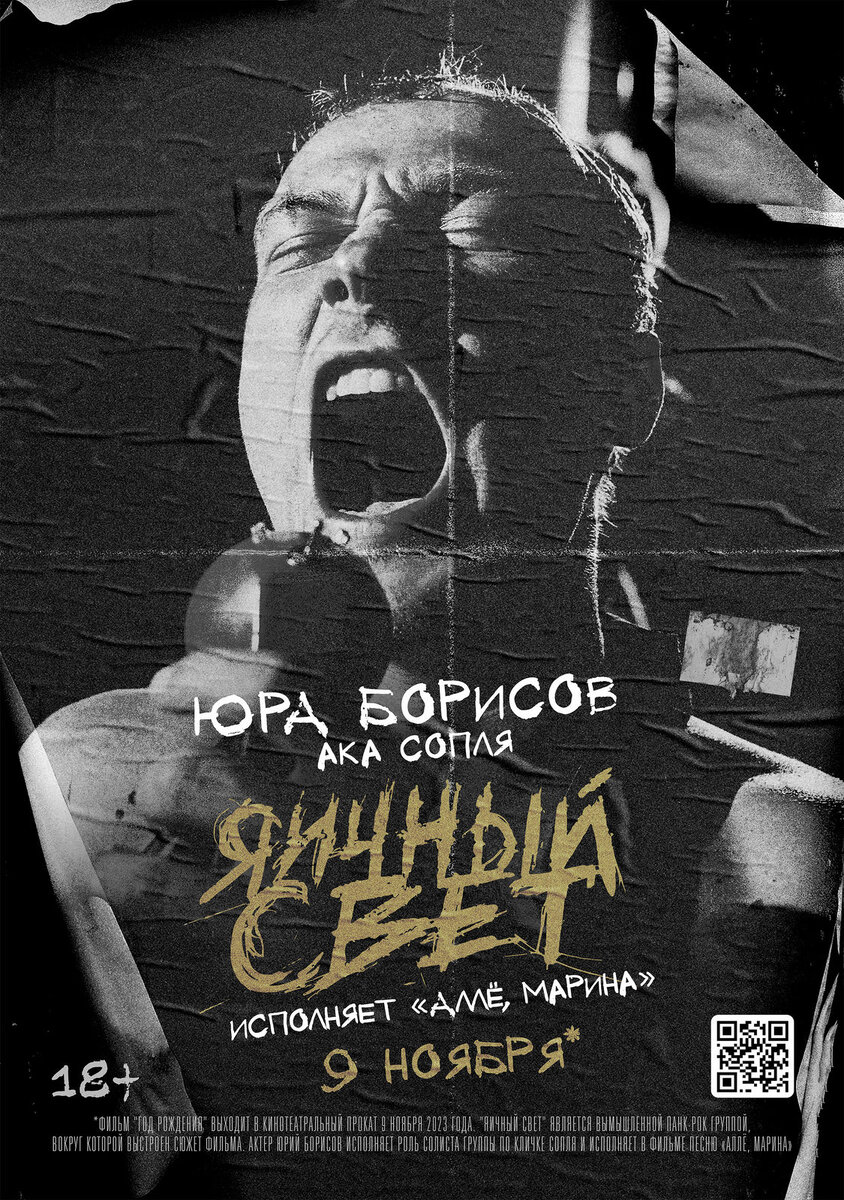 Юра Борисов исполнил песню «Аллё, Марина!», ставшую саундтреком к романтической кинофантазии «Год рождения». Клип и сингл опубликованы на платформах Яндекс Музыка и Вконтакте. В фильме актёр играет фронтмена группы «Яичный свет» по кличке Сопля. Юра Борисов уже был утвержден на роль, когда параллельно проводился кастинг на исполнителя саундтрека к фильму. Съёмочная команда отсмотрела сотни кандидатов к моменту, когда Юра предложил себя. По рассказам творческой группы, «он снёс мощью своего хриплого, дикого исполнения всех присутствующих». Ранее по Москве были развешаны плакаты с лидером группы «Яичный свет», которые стали анонсом к выходу клипа и песни.