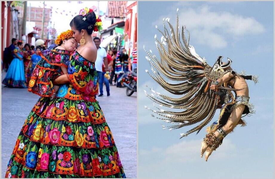 Мама с дочкой в традиционных нарядах, мексиканский штат Чьяпас