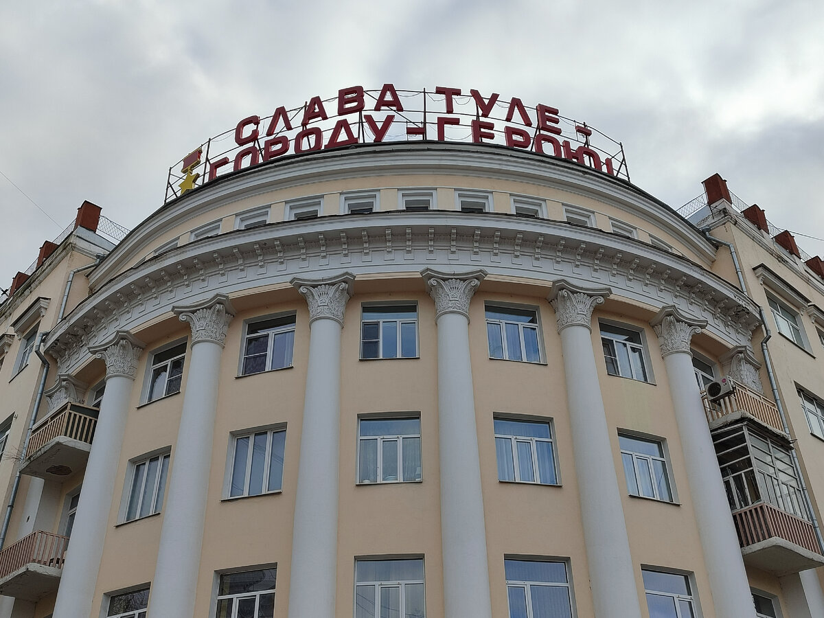 На противоположной стороне улицы стоит дом-близнец того здания, мимо которого мы проходили в самом начале. Такова была задумка архитекторов, чтобы люди, въезжающие в Тулу, оказывались как бы между воротами в город. В этом доме когда-то находилась булочная "Нива", знакомая каждому туляку. К сожалению, как и другие знаменитые тульские булочные, она не пережила 90-е годы прошлого века. Слишком уж привлекательными для новых бизнесменов были дома, в которых они находились.