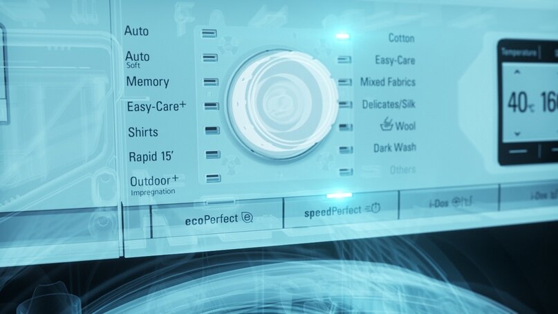 А вот во втором случае цель другая – быстро, но качественно постирать вещи действительно грязные, которые требуют стандартного цикла. Например, функция speedPerfect. Машина, пораскинув электронными мозгами, постарается найти, на чем можно сэкономить драгоценные минуты без ущерба качеству стирки. Обобщив данные о загрузке, типе ткани, нужном количестве воды, учтя дополнительные опции, она решит, какое минимальное время ей потребуется именно для этой стирки. Кстати, в режиме speedPerfect в моющем средстве быстрее проявляются свойства отбеливателя – благодаря чуть более высокой (в допустимых для того или иного типа ткани рамках) температуре воды. Экономия времени, по данным Siemens, может достигать в некоторых случаях до 65% от продолжительности стандартного цикла стирки.