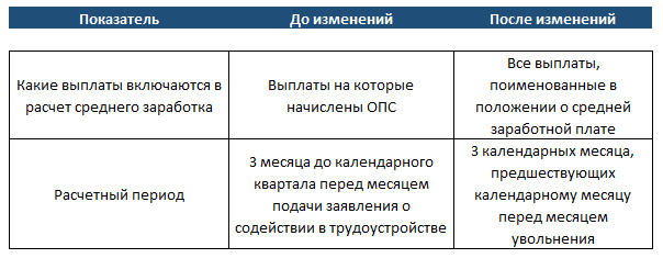 Изменился и порядок определения расчетного периода при определении среднего заработка. Согласно п. 2 Правил, средний заработок необходимо рассчитывать за 3 календарных месяца, предшествующих календарному месяцу перед месяцем увольнения. Ранее в расчетный период включались 3 месяца до календарного квартала перед месяцем подачи заявления о содействии в трудоустройстве.