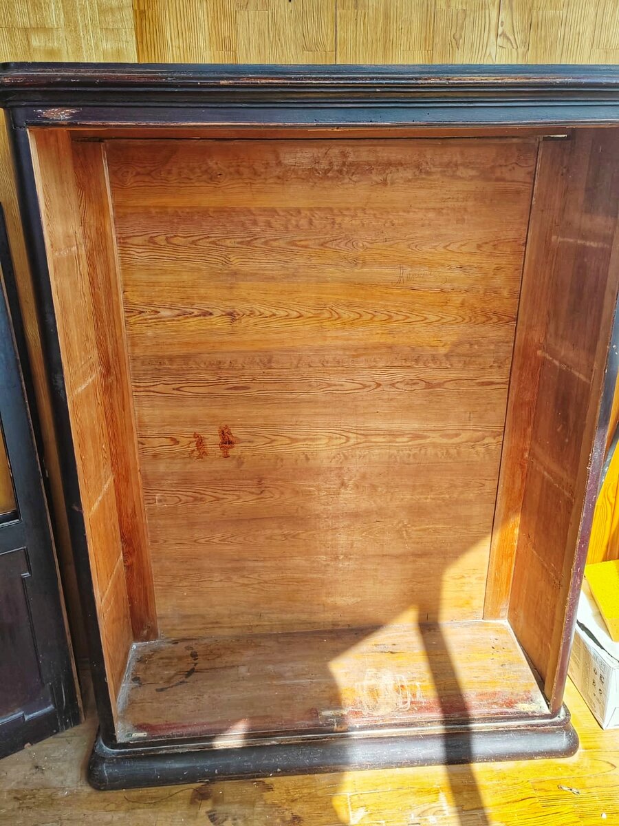 Сегодня я хочу рассказать вам о реставрации старинного шкафа, который попал к нам в мастерскую. Его хозяева уже разобрали его и собирались сами привести в порядок, однако потом решили доверить это дело нам. Думаю, они приняли верное решение. У шкафа была изогнута верхушка и от этого повреждён шпон. Это тоже видно на фото. От времени шкаф рассохся и щелей на стыках было очень много. В домашних условиях привести в нормальный вид этот шкаф было бы проблематично. Первым делом мы очистили шкаф от старого лака и выровняли верхушку. Затем мы склеили ее и решили полностью заменить шпон на верхушке, так как старый был сильно поврежден. Все щели и сколы были убраны, на боках восстановлены утраты шпона и прикрепили все недостающие детали. На дверях, где должен был быть замок, осталось большое отверстие, как будто замок был выпилен. Поскольку сам замок был утрачен, мы решили закрыть это отверстие, что и сделали. После завершения работ шкаф был покрыт цветным маслом для придания благородно