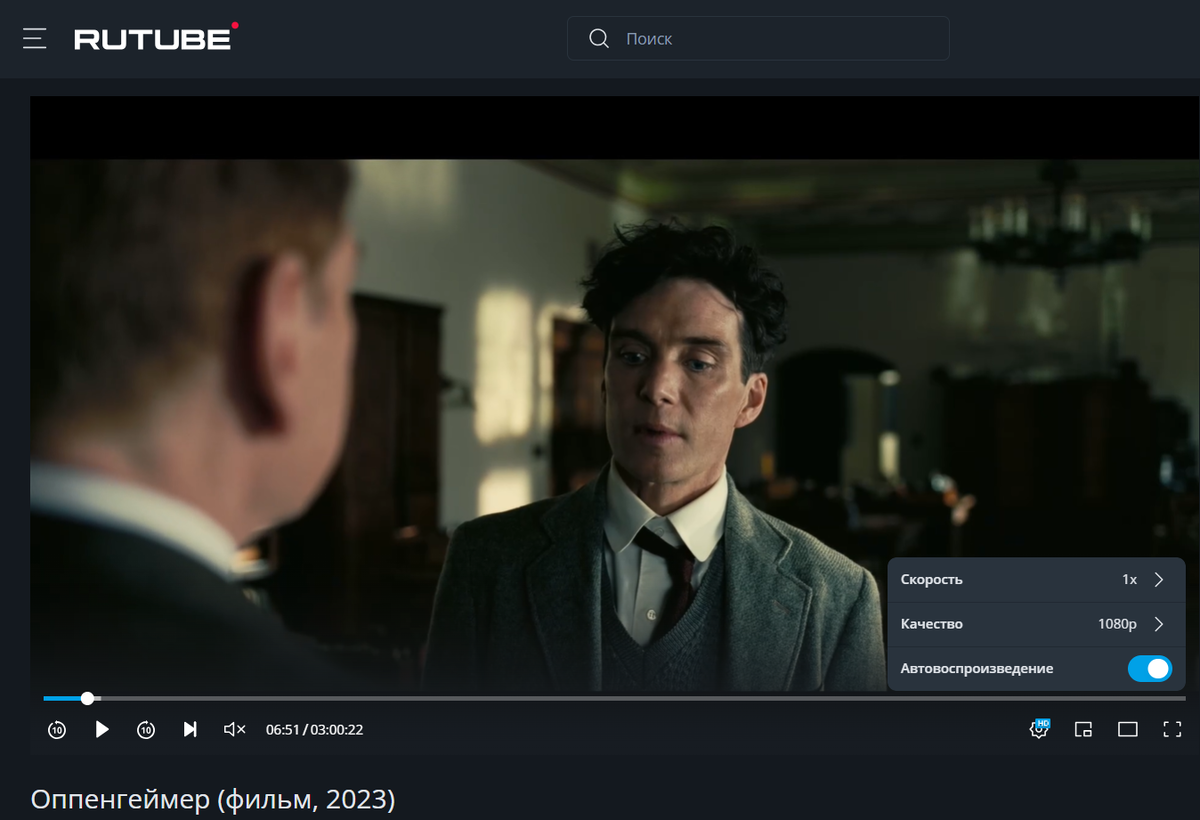«Оппенгеймер» появился на Rutube в HD-качестве и с русской озвучкой – его можно смотреть бесплатно