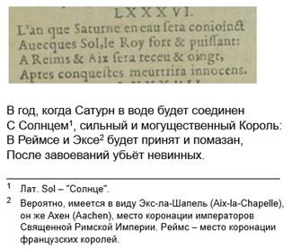 В случае этого катрена мы имеем стандартное следование временны́х характеристик: дата катрена – уточняющее время – время предсказанного события.