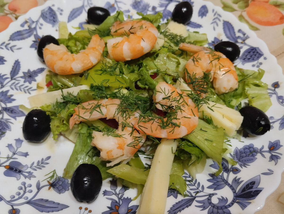 Сегодня расскажу что я, готовила своей подопечной сегодня. От всего приготовленного утренней сделкой моя бабуля отказались. Тогда я, спросила что она хочет. Она сказала, что хочет маслин и креветок, вуаля через 15 минут ужин готов!