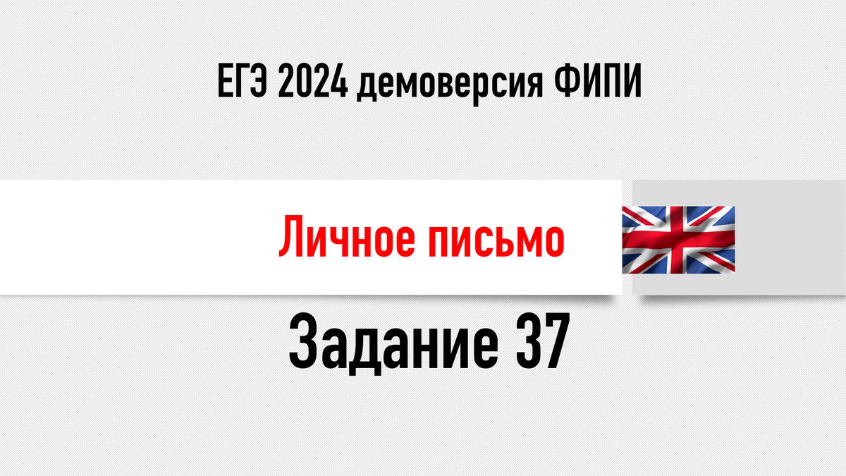 Формат задания Прежде чем приступить к выполнению задания 37, освежим структуру личного письма: Стиль необходимо выдерживать неформальный. Задание 37 (демоверсия ФИПИ-2024) Мой вариант ответа Dear Kevin, Thanks for your recent email! I was glad to get a message from you again! As for your questions, I must admit that I’m a real bookworm. I read books for pleasure every day. As soon as I’ve finished my homework, I grab a book and dive into its fictional world. The last book I’ve read is “Looter” by Berkem al Atomi. It’s a piece of post-apocalyptic fiction. For my literature classes, however, I have to read classic books, which is also really enjoyable. By the way, where did you see the film in Spanish? Did the film have subtitles? What was the genre of the film? Hope to hear from you soon! Best wishes, Nastya (118 words)