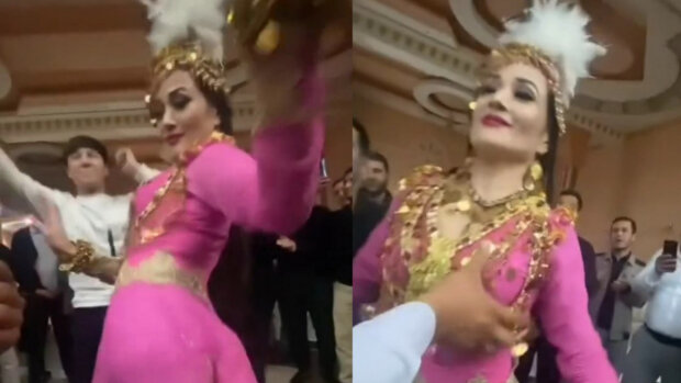 На видео можно увидеть, как гости торжества танцуют в компании танцовщицы. Один из мужчин решил во время танца облапать танцовщицу.
