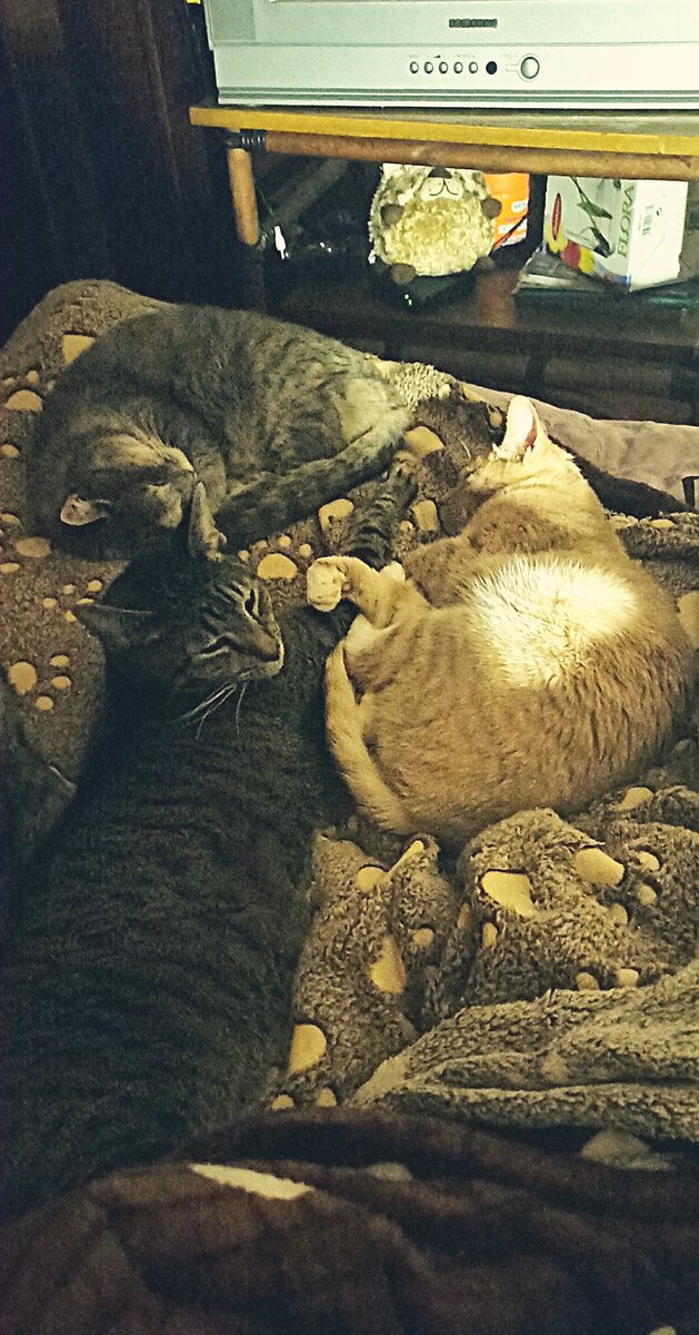 Дождь.Четвертые сутки не прекращается дождь. Всё дождь...и дождь... и дождь...как же это угнетает - совсем ничего не хочется, тоска😕 Моё околопростудное состояние так никуда не девается, но оно такое же вялотекущее, как я сама - ни туда, ни сюда. Знобит и как-то...крючит. Сегодня с самого утра стойкое чувство, что по мне пару раз проехал Камаз, возможно, даже попрыгал немного - и в связи с этим мне срочно нужно прилечь. Полежать, естественно, получается только к вечеру. И тут же дружною толпой набегают шерстяные терапевты! Но терапия в наше время - она ж не бесплатная! Где вы такое видели? Не-не, это несерьёзно и коммерчески невыгодно. За лечение: мурчанием, перетаптыванием по тебе лапами с коХтями, пиханием тебе терапевтического хвоста в нос, чиханием в ухо, кусиком за пальцы на ногах и закидыванием на тебя лечебных пуантов, от тебя требуют возмездности! Шобы гладить. Чесать пузяку. И вот тут вот, за ушком тоже, да-да-да! Вот, лежим. Одной ногой смотрю сериал, другой - чешу