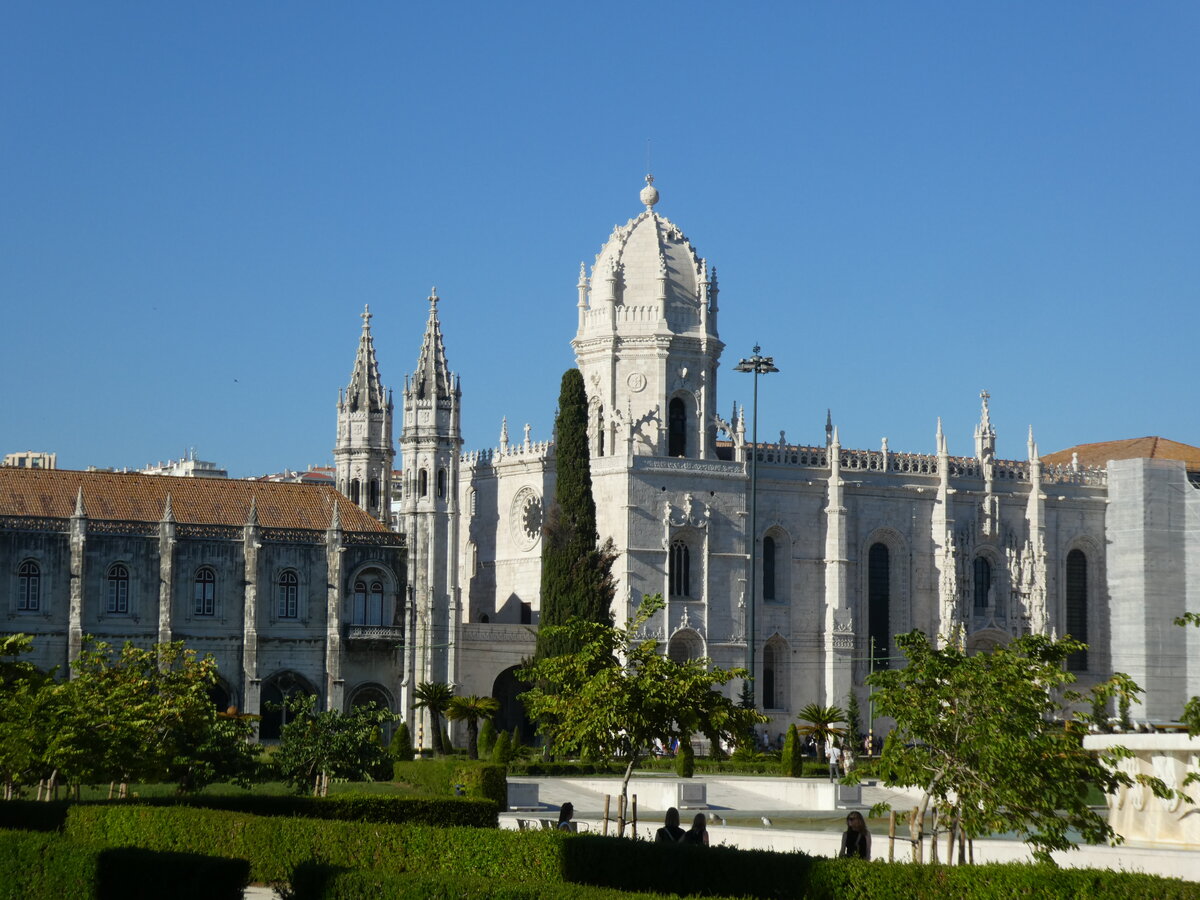 Во время сентябрьского вояжа у меня было выделено всего три неполных дня на Лиссабон, но я заранее знала, что в монастырь Жеронимуш хочу поехать обязательно. И очень рада, что не рискнула откладывать его на самый последний день — была мысль поехать туда утром перед самолётом. Спасибо гиду, с которым мы гуляли по городу: предупредил, что в этот день монастырский собор будет закрыт (а ретроспективно я понимаю, что не успели бы мы быстро обернуться туда-обратно). Поэтому поехали посреди дня, смирившись с неожиданно сильной для последних дней сентября жарой.