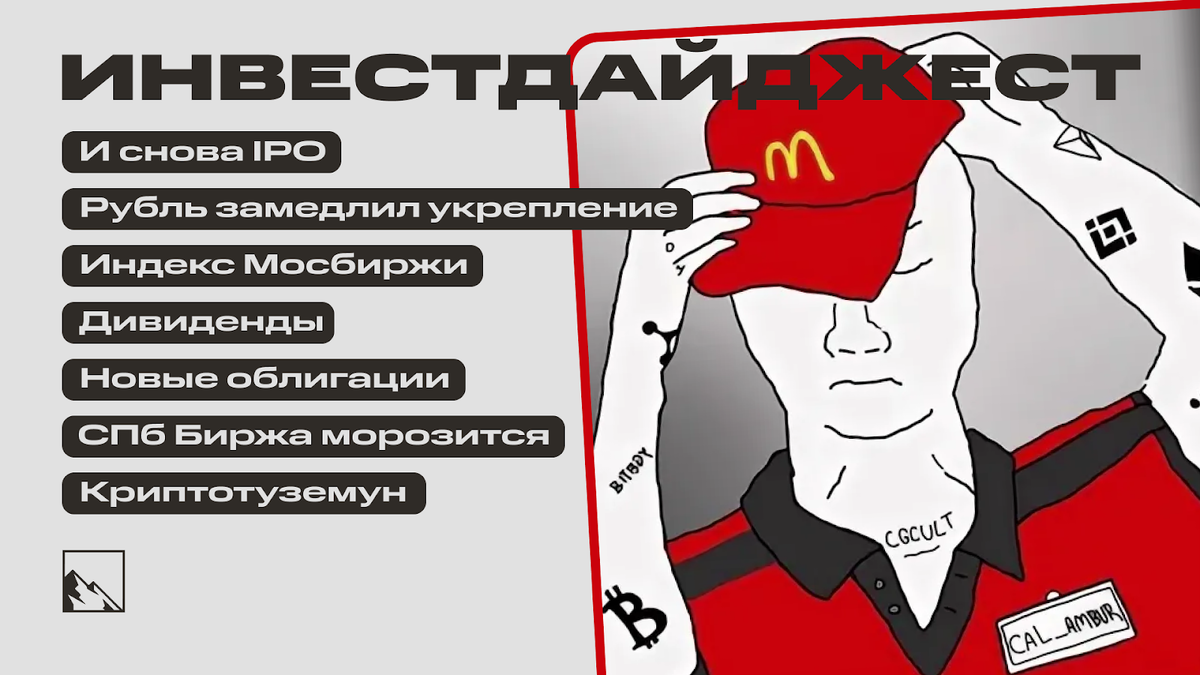 Рубль укрепляется пятую неделю подряд, но ниже 92 пока не может — сильное сопротивление. СПб Биржа никак не открывает торги. Крипта растёт на позитивных новостях, ГПН объявил неожиданно высокие дивиденды, появились новые облигации, а я пополнил свой портфель новыми активами и рассказал в традиционном инвестдайджесте о самом важном, что, на мой взгляд, произошло за неделю.