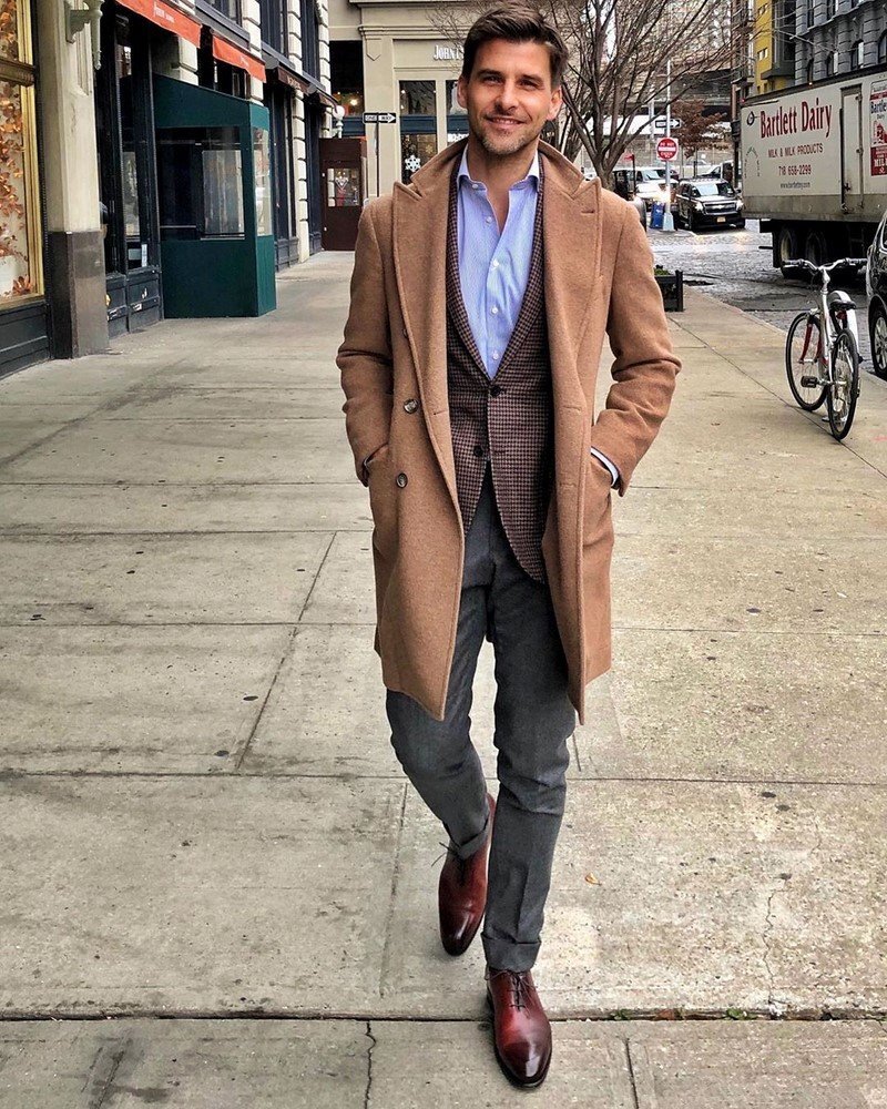 Еще многослойность удобна тем, что деловые костюмы, сочетание водолазки и пиджака можно с легкостью завершить любым вариантом мужской верхней одежды осень-зима, не беспокоясь о том, можно ли так делать.