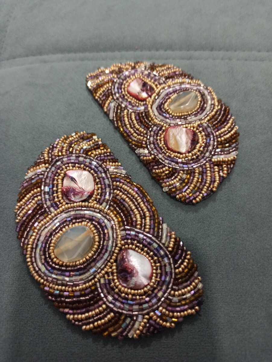 Вышивка выполнена на тонком дермантине, мононитью. Использован перламутр и натуральные камни.