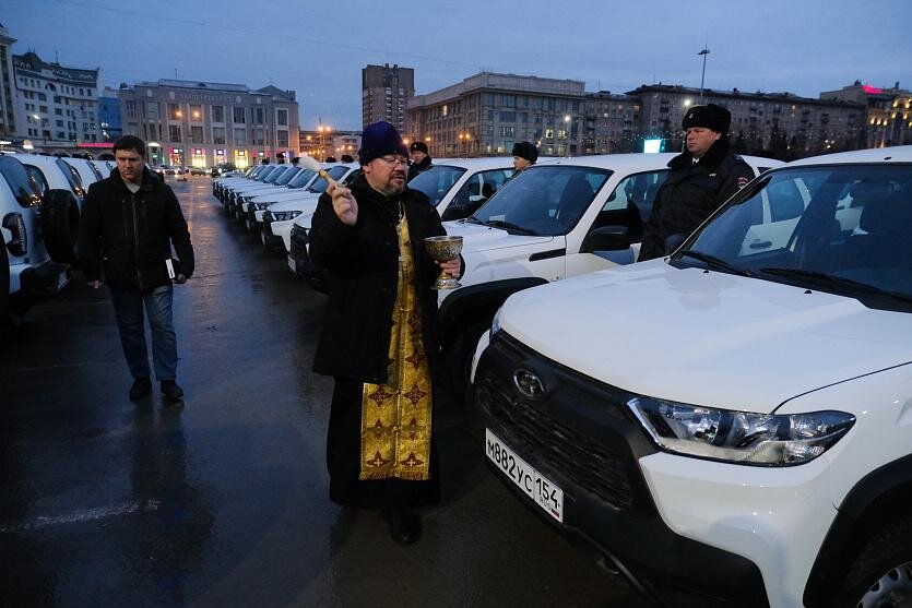 В Новосибирске участковым раздали 35 автомобилей и освятили их