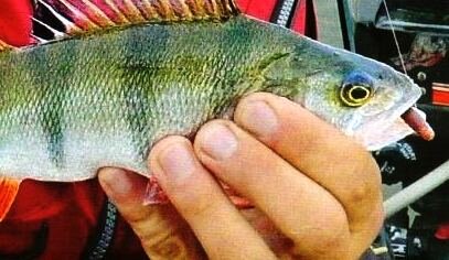 Заякорившись в 15 метрах от стенки камыша с полоской водорослей, провожу пару забросов под углом и перпендикулярно к берегу и ощущаю первую поклевку, затем целую серию. Даже некрупный окунь на спиннинг весом в 100 грамм нас с напарником вполне устраивает. Следующие забросы не приводят к долгожданной поклевке, а лишь привлекают пару окуней, которых видно с помощью поляризационных очков.