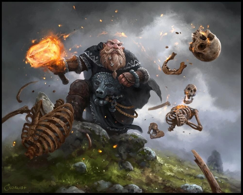 Но то были не разбойники. Презренные умертвия, поднятые каким-то некромантом. Почти все мои братья по молоту пали тогда, лишь я и Ульфгар, потеряв много крови были взяты в плен тёмным чародеем для каких-то жутких экспериментов. Ульфгар был замучен на моих глазах, части его тела послужили компонентами для жутких заклинаний. Судя по всему, такая же участь ожидала и меня. Но однажды, когда я уже потерял счёт дням в убежище мага нагрянули келемвориты… Из последних сил я смотрел на то, с какой лёгкостью «бич мёртвых» в сопровождении жрецов разметал всех тех тварей, что, в свою очередь, ранее с такой же лёгкостью одолели нас. Будучи в заточении я неустанно молился Морадину, ожидая, что Всеотец пошлёт нам отмщение. Но отмщение пришло от Келемвора в лице его служителей. Кто знает, возможно, боги решают между собой судьбы своей паствы, делегируя свою благодать тем, кого посчитают более подходящими? Однако, в тот день я устремил взор в храм Келемвора Милостивого, увиденные мной ужасы извращённой магии не должны повторятся на этой земле. Такой путь я выбрал и следовать мне ему до самой моей смерти.» - вытряхнув пепел, Броттор спрятал трубку в кошель и присоединился к своим товарищам, отправившимся обратно в Хулгар предать земле тела усопших.