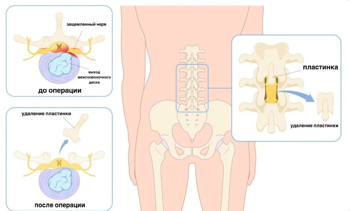 Ламинэктомия — это тип операции на позвоночнике, который включает хирургическое удаление сегмента кости, называемого пластинкой.