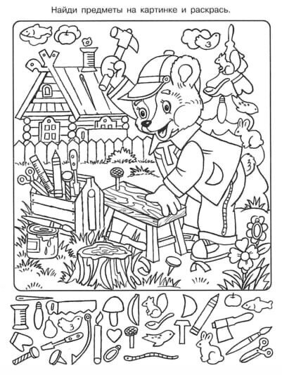 2. Включаем различные игры на внимание и память. Например, как предложенные ниже картинки, на которых надо найти небольшие предметы, нарисованные рядом.