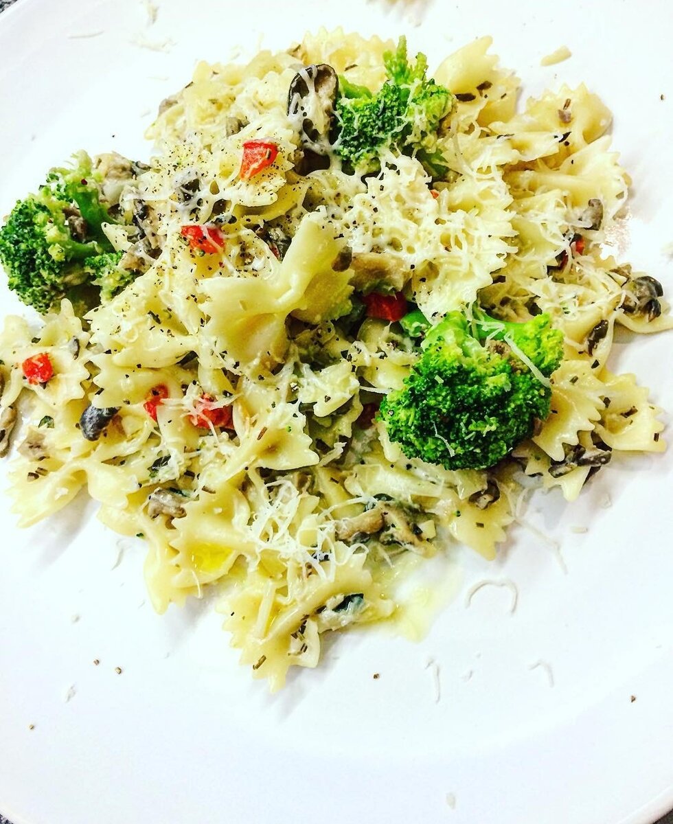 Замечательный и вкусный ужин за 20 минут. Ингредиенты: фарфалле (луки) - на 300 г брокколи-200 г сливок 10% -100 мл репчатого лука - 1 шт. сушеного розмарина - чайная ложка вешенок - 200 г красного болгарского перца - 1/2 стакана оливкового масла первого отжима - 1 столовая ложка чеснока -1 зубчик соль по вкусу черный молотый перец по вкусу пармезан при подаче на ваш вкус! ( такого понятия, как много сыра, не существует. Приготовление: Отварите лук в подсоленной воде (пока он варится, он будет готово и овощи) аль денте. Налейте оливковое масло в сковороду и выложите нарезанный лук, брокколи и перец. Через 5 минут добавьте грибы, чеснок и специи и тушите в течение нескольких минут. Накройте крышкой и тушите в течение 5-7 минут. Влейте сливки, они должны загустеть. Это займет 2-3 минуты. Добавьте фарфалле к овощам и перемешайте. Даем постоять -2 минуты и подаем!!! Посыпать сверху пармезаном, мммм... очень!! Совет: Овощи я тоже готовлю аль денте (они сохраняют и цвет, и текстуру) Н