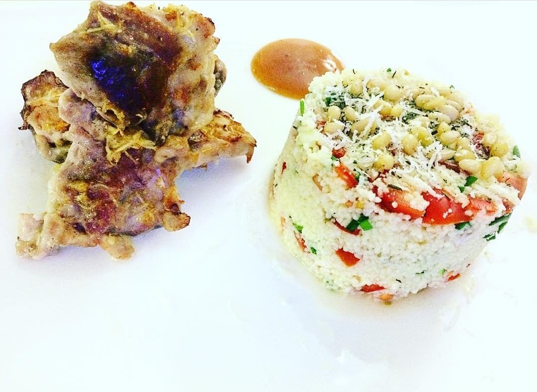 ПП ужин! Куриные бедра с шимоном и имбирем. Кускус с помидором Черри, кедровыми орешками, пармезаном, зеленым луком и тимьяном!